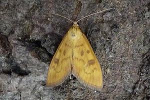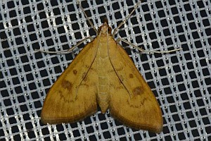 Die Nierenmakel ist bei M. auralis meistens dunkel gefüllt, manchmal aber auch nicht. Ein sehr kennzeichnendes Merkmal ist die Grundfarbe, die bei M. flavalis richtig gelb bis blassgelb ist, bei M. auralis dagegen ein deutlich dunkleres in Richtung Ocker oder Orange gehendes Gelb. Häufig ist bei M. auralis auch der Hinterflügelapex etwas verdunkelt. (Siehe [Forumsbeitrag] von Rolf Mörtter)