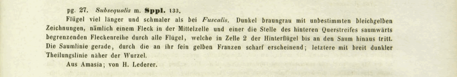 Nach dem Bestimmungen des ICZN gilt die Tafel Pyralidides 19, obwohl vor dem Text von 1855 erschienen, nicht bereits als Erstbeschreibung, weil sie uninominal beschriftet ist.
