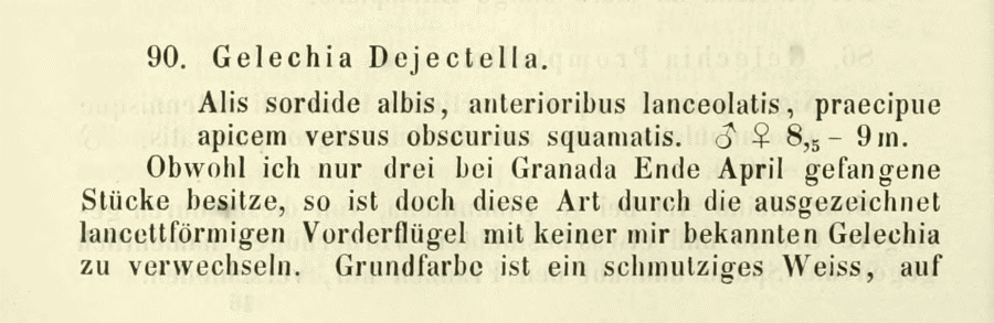 - Gelechia dejectella Staudinger, 1859 [Originalkombination]