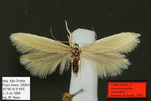 Huemer & Karsholt (2001: 239): “Holotype. ♂; ‘Italia Mte Baldo Noveza 1300-1600 m M.6.66. leg. Burmann’, ‘TLNF Innsbruck <nowiki>1988ç12’ (TLMF).” — Paratypen: 66 ♂♂, und 7 ♀♀.