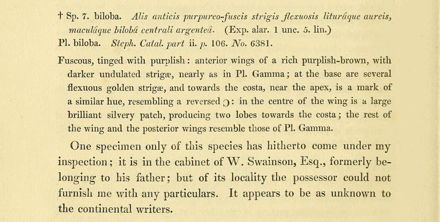 - Plusia biloba Stephens, 1829 [Originalkombination]
