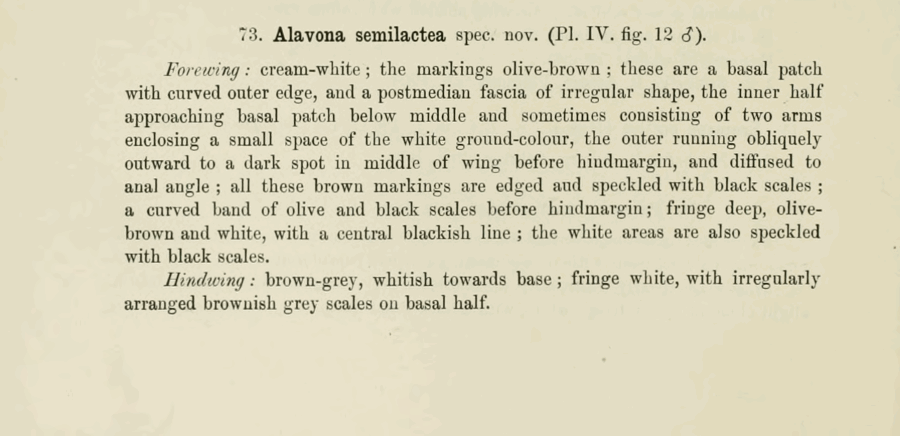 - Alavona semilactea Warren & Rothschild, 1905 [Originalkombination]