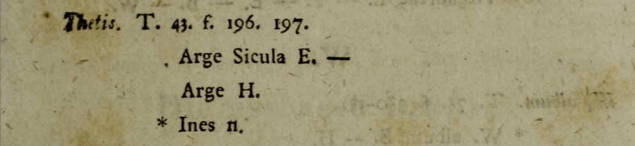 - Nomen novum: Hoffmansegg [sic], J. C. Graf von (1804): Alphabetisches Verzeichniss zu J. Hübner's Abbildungen der Papilionen mit den beigefügten vorzüglichsten Synonymen. — Magazin für Insektenkunde, herausgegeben von Karl Illiger 3: 181-206. Braunschweig (Karl Reichard).