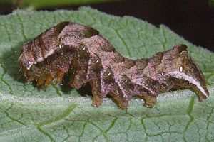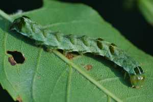 3: halbschattiger Buchenmischwaldweg, Raupe an Braunwurz, Deutschland, Baden-Württemberg, Südbaden, Hägelberg, 410 m, halbschattiger Buchenmischwaldweg an Braunwurz, 28. August 2012 (Foto: Florian Nantscheff)Forum