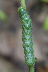 1-2: vorletztes Stadium, Deutschland, Thüringen, Göschwitz (bei Jena), schattiger Waldweg, an Glockenblume (Campanula spec.), 19. August 2006 (Freilandfotos: Heidrun Melzer), leg., cult. & det. Heidrun MelzerForum