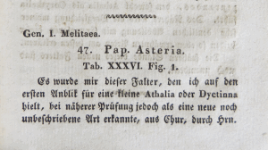 - Erstbeschreibung: Freyer, C. F. (1828): Beiträge zur Geschichte europäischer Schmetterlinge mit Abbildungen nach der Natur. Erster Band. I. bis VIII. Heft: 1-170, pl. I-XLVIII. Augsburg (beim Verfasser).