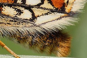 Der Umkehrschluss ist jedoch unzulässig! Ein ♀ mit rötlich behaarten Palpen kann durchaus auch das von M. britomartis sein. Denn M. britomartis-♀♀ können schwarze, braune, schwarzbraune, oder auch rotbraune bis rötliche Palpen haben. Lediglich in sehr kühlen, hochgelegenen Gebieten der südwestlichen Schwäbischen Alb, wo beide Arten in Lagen oberhalb 800 m oft syntop vorkommen, scheint es keine M. britomartis-♀♀ mit rötlichen Palpen zu geben. Zumindest ergaben Eiablagen von ♀♀ mit roten Palpen hier stets eindeutige M. aurelia-Raupen. Schon wenige Kilometer weiter nordöstlich - und an deutlich tiefer gelegenen Standorten - gilt diese Regel jedoch nicht mehr!