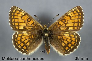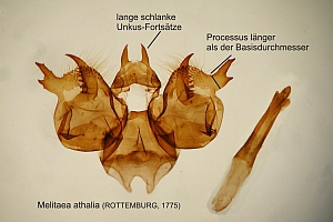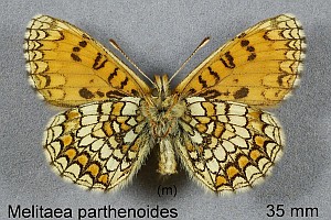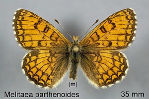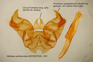 In Südwesteuropa hat auch M. athalia celadussa rotbraun gefärbte Haare an den Palpen. Im direkten Vergleich sind diese aber erkennbar dunkler und weniger leuchtend gefärbt als die von M. parthenoides.