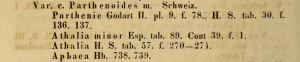 - Erstbeschreibung: Keferstein, C. (1851): Versuch einer kritisch-systematischen Aufstellung der europ. Lepidopteren mit Berücksichtigung der Synonymie. — Entomologische Zeitung 12: (7) 220-224, (8) 242-256, (9) 272-283, (10) 304-319, (11) 323-328. Stettin.