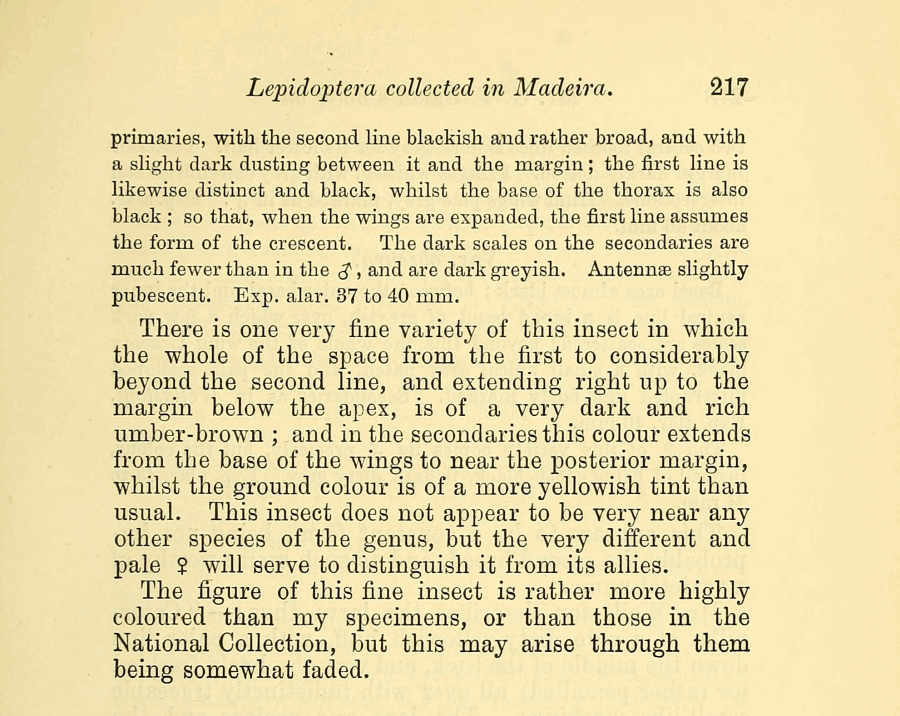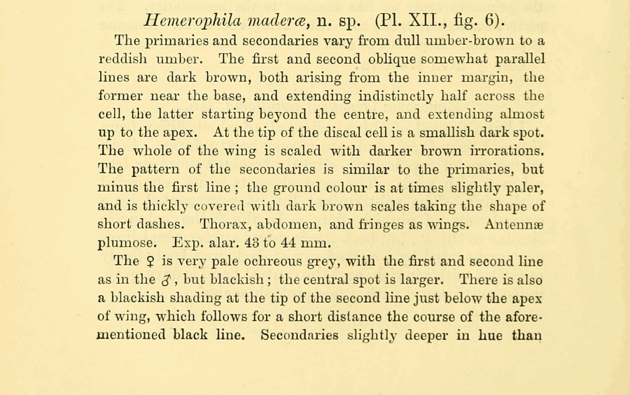 - Erstbeschreibung: Bethune-Baker, G. T. (1891): Notes on the Lepidoptera collected in Madeira by the late T. Vernon Wollaston. — The Transactions of the Entomological Society of London for the Year 1891: 197-221 + pl. XII.