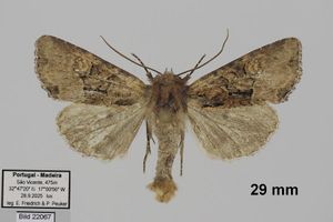 - Erstbeschreibung: Pinker, R. (1971): Neue und interessante Lepidopteren aus Madeira und den Azoren mit faunistischen Hinweisen auf die Kanaren. — Zeitschrift der Wiener entomologischen Gesellschaft 54 (9-12): 101-131, pl. 12-14. [hier 107-108, pl. 12 fig. C/1] [PDF auf zobodat.at]