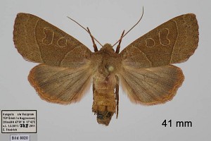 9-11: ♀, Ungarn, Umg. Veszprem, Truppenübungsplatz zwischen Ürküt und Nagyvazsony, 300 m, Raupe am 1. Mai 2011 nachts an Eichenstamm, e.l. 27. August 2011 (leg., cult., & det. Fotos: Egbert Friedrich)