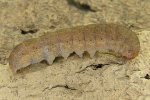 5-9: Ungarn, Umg. Veszprem, Truppenübungsplatz zwischen Ürküt und Nagyvazsony, 300 m, Raupe am 1. Mai 2011 nachts an Eichenstamm, 3. Mai 2011 (leg., cult., & det. Fotos: Egbert Friedrich)