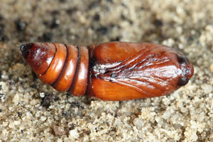 1-4: ein Individuum, Österreich, Vorarlberg, Rheinauen bei Altach-Hohenems, leg. Raupe 30. April 2006 auf Brombeere (Rubus sp.), Foto 1: 1. Mai 2006, 2: 13. Mai 2006, 3: 14. Mai 2006, 4: 21. Mai 2006 (Fotos: Christian Siegel), leg., cult & det. durch Schlupf des unter 2 gezeigten Falters Christian Siegel (jede Bildmontage zeigt dasselbe Individuum sowohl dorsal wie auch seitlich)