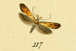 - Tinea pyropella Hübner, [1793] [jüngeres primäres Homonym von Tinea pyropella [Denis & Schiffermüller], 1775