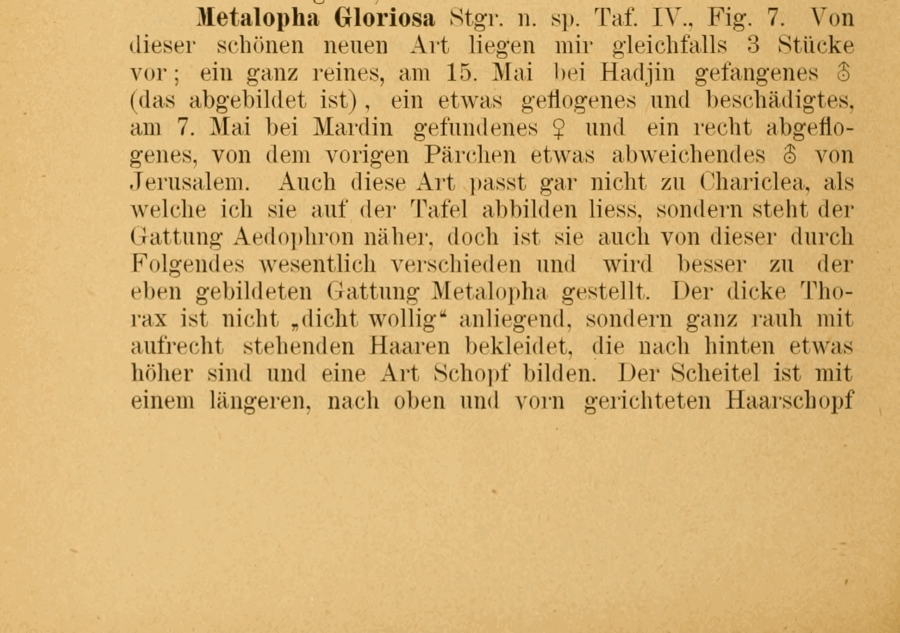 - Erstbeschreibung: Staudinger, O. (1892): Neue Arten und Varietäten von Lepidopteren des paläarktischen Faunengebiets. — Deutsche entomologische Zeitschrift Iris 4 (2): 224-339, pl. III-IV.