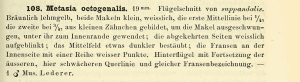 In der Erstbeschreibung von Lederer (1863) wird die Art erstmals Seite 421 unter den Arten der Gattung Metasia gelistet: "octogenalis m. Taf. 15. Fig. 10 108) ... Syrien." S. 481 heißt es dann: "108. Metasia octogenalis. 19mm. Flügelschnitt von suppandalis. Bräunlich lehmgelb, beide Makeln klein, weisslich, die erste Mittellinie bei 1/4, die zweite bei 3/4, aus kleinen Zähnchen gebildet, um die Makel ausgeschwungen, unter ihr zum Innenrande gewendet; die abgekehrten Seiten weisslich aufgeblinkt; das Mittelfeld etwas dunkler bestäubt; die Fransen an der Innenseite mit einer Reihe weisser Punkte. Hinterflügel mit Fortsetzung der äusseren, hier schwächeren Querlinie und gleicher Fransenbezeichnung, — 1 Männchen Mus. Lederer." Der Erstbeschreibung lag also wohl nur ein Einzelfalter aus Syrien zu Grunde. Meyrick (1937) stellte dann wegen dieser Art eine eigene Gattung auf: Epactoctena. Bei [GlobiZ.Pyraloidea, Artseite] heißt das Tier daher Epactoctena octogenalis (Lederer, 1863). Leraut (2012) untersuchte ein Tier aus Syrien und bildet dazu auch eine Zeichnung der weiblichen Genitalien ab; er kommt zum Schluss, dass es sich um eine typische Art der Gattung Metasia handelt, dass also Epactoctena als Synonym zu Metasia zu stellen ist.