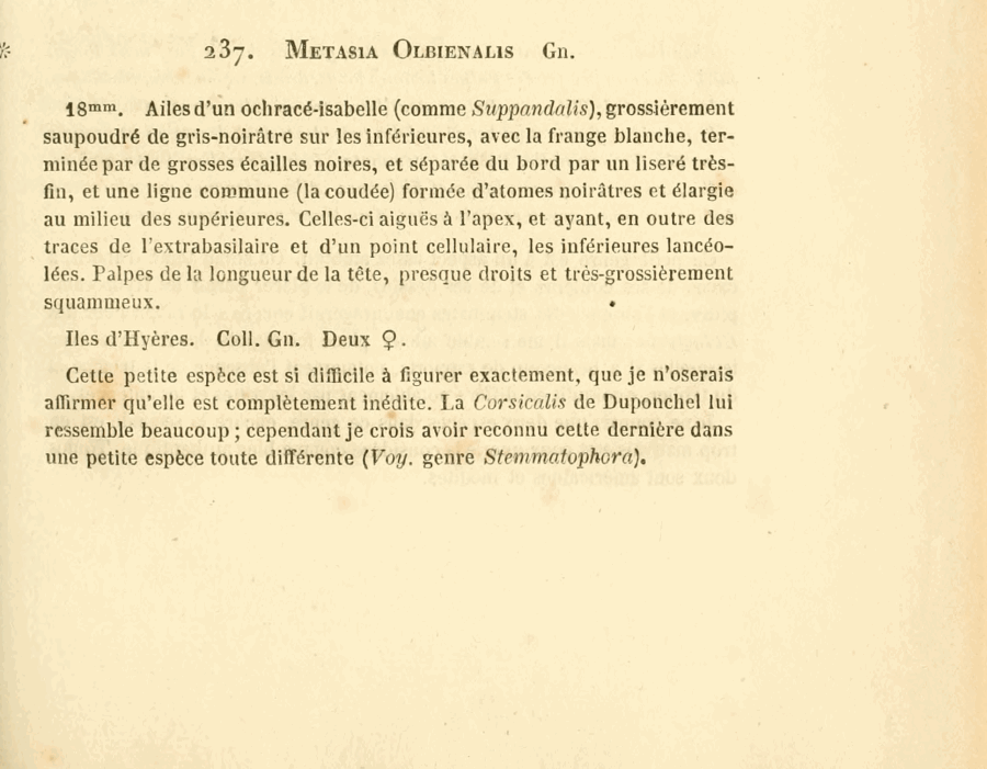 - Erstbeschreibung: Guenée, A. (1854): Histoire naturelle des insectes 8. Deltoïdes et Pyralites: 1-448, explication des planches p. 1-6, pl. 1-10. Paris (Librairie encyclopédique de Roret).