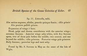 - Erstbeschreibung: Douglas, J. W. (1850): On the British Species of the Genus Gelechia of Zeller. — The Transactions of the Entomological Society of London. New Series 1: 14-21, 60-68.