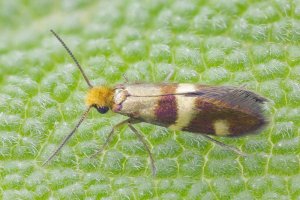- Micropterix aureoviridella (basales Querband zur Costa hin leuchtend golden)