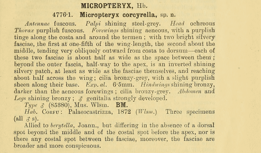 - Micropteryx corcyrella Walsingham, 1919 [Originalkombination]
