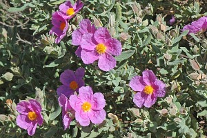 2-3: von Faltern besuchte Blüten von Zistrose (Cistus ?albidus) und Stein-Eiche (Quercus ilex): Daten wie Bild 1 (Fotos: Rudolf Bryner)