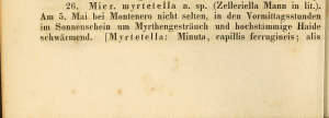 Zeller (1850: 62): "in den Vormittagsstunden im Sonnenschein um Myrthengesträuch [...] schwärmend."