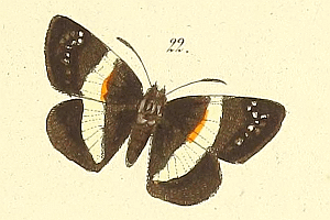 - Erstbeschreibung: Felder & Felder & A. F. Rogenhofer (1864-1867): Reise der österreichischen Fregatte Novara um die Erde in den Jahren 1857, 1858, 1859 unter den Befehlen des Commodore B. von Wüllerstorf-Urbair. Zoologischer Theil. Zweiter Band. Zweite Abtheilung: Lepidoptera. Atlas: 1-10 (Inhalts-Verzeichniss pl. I-LXXIV), 1-10 (Erklärung der Tafeln LXXV-CVII), 1-20 (Inhalts-Verzeichniss Tafeln CVIII-CXL), pl. I-CXL.