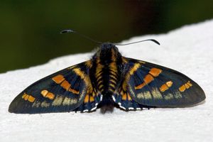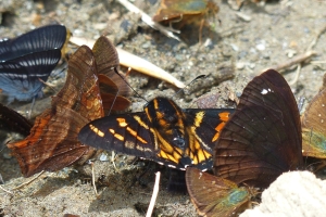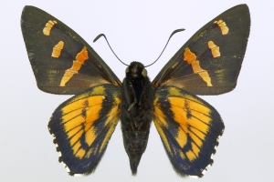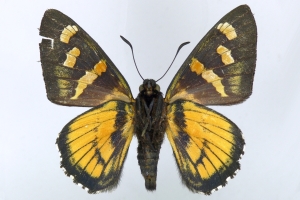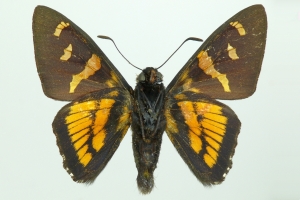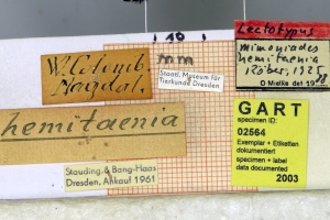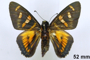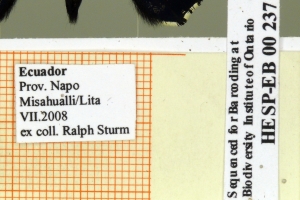 16-18: Lectotypus ♂ von Mimoniades hemitaenia, Daten siehe Etiketten (fot.: Ernst Brockmann, Fotos bearbeitet: Michel Kettner), coll. Senckenberg Museum für Tierkunde, Dresden.