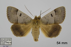 7: ♀, Deutschland, Sachsen, Dübener Heide, Doberschütz, Raupe leg. Heidrun Melzer 13. Juni 2008, e.l. 12. April 2009 (Foto: Michel Kettner), cult. & det. Michel KettnerForum