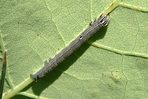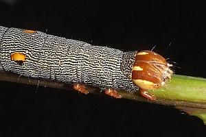1: mittleres Stadium, Deutschland, Sachsen, Dübener Heide, Umgebung von Doberschütz, Raupe leg. 8. Juni 2008, 9. Juni 2008 (Studiofoto: Heidrun Melzer), det. Heidrun MelzerForum