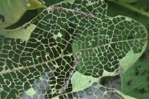 2: Fraßbild mit Jungraupen, Deutschland, Niedersachsen, Landkreis Heidekreis, Krelingen bei Walsrode, Juni 2011(Studiofoto: Thomas Fähnrich)Forum