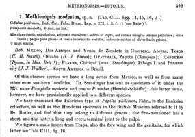 - Methionopsis modestus Godman, 1901 [Originalkombination]