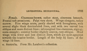 - Original description: Walker, F. [1863] (“1862”): List of the specimens of lepidopterous insects in the collection of the British Museum 26: 1479-1796. London.