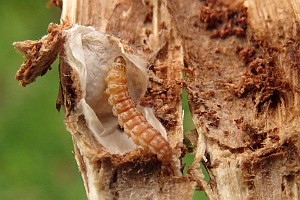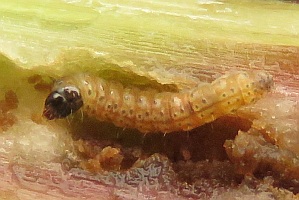 2: Belgien, Aalst, 6 m, Raupe in Stängel von Ampfer-Knöterich (Persicaria lapathifolia), 23. August 2018 (leg., cult., det. & Foto: Ruben Meert)