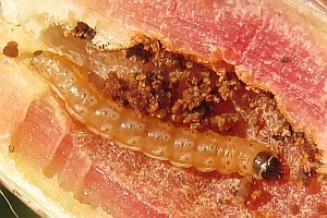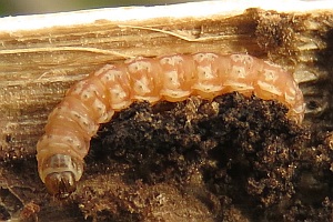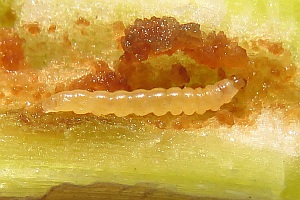4: Belgien, Lebbeke, 5 m, Raupe in Stängel von Ampfer-Knöterich (Persicaria lapathifolia), 19. September 2019 (leg., cult., det. & Foto: Ruben Meert)
