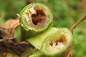 3: Belgien, Dendermonde, 6 m, Längsschnitt von besetztem Stängel von Ampfer-Knöterich (Persicaria lapathifolia) mit Resten des Überwinterungsgespinstes, 19. Mai 2020 (leg., cult., det. & Foto: Ruben Meert)