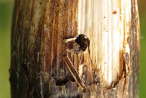 1: Belgien, Elversele, 7 m, Ausschlupf-Loch in Stängel von Ampfer-Knöterich (Persicaria lapathifolia), 24. Mai 2020 (leg., cult., det. & Foto: Ruben Meert)