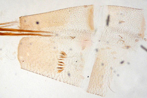 Etwas andere Form der Signa, etwa 14 an der Zahl. Antrum stärker eingebuchtet als bei Monopis weaverella.