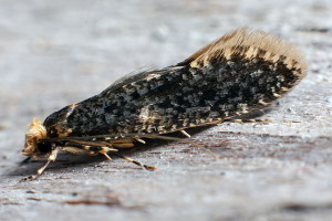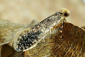 M. weaverella mit hellgelblichem Fleck am Innenwinkel der Vorderflügel am Beginn der Fransen, der bei M. laevigella fehlt.