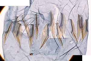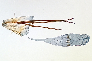 Etwas andere Form der Signa, etwa 14 an der Zahl. Antrum stärker eingebuchtet als bei Monopis weaverella.