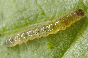 1: Italien, Südtirol, Bozen-Rentsch, 265 m, Raupe an Rosa canina 8. April 2015 (leg., cult. & Foto: Werner Pichler), conf. Raupe Thomas FähnrichForum