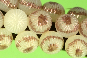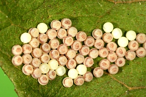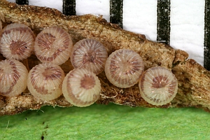 3: Eiraupe (2,5 mm), Deutschland, Bayern, Maßbach in Unterfranken, 320 m, ex ovo, ♀ am Licht am 8. August 2008, Raupenschlupf ab 17. August 2008 (cult., det. & fot.: Oskar Jungklaus)