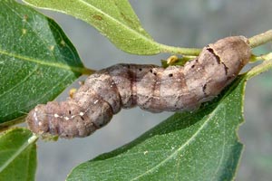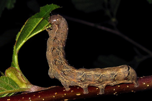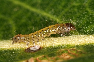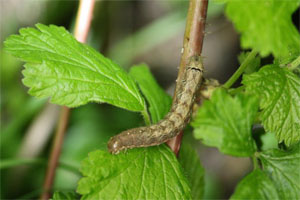 2: Raupe an Rubus caesius direkt über der Wasserkante: Deutschland, Niedersachsen, Fluss Aller bei Flettmar, Landkreis Gifhorn, 45 m, 3. Mai 2013 (Foto: Wolfgang Rozicki)Forum