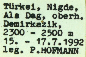 1-2: ♂, Türkei, Provinz Isparta, Egirdir, 1300 m, 22. Mai 1989 (leg. & fot.: Michel Kettner), det. Ernst Brockmann (pers. Mitteilung)Forum