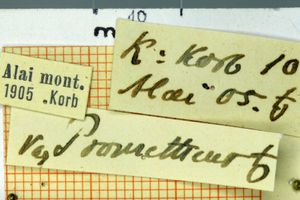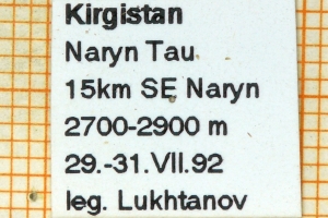 4-6: ♂, Kirgisistan, weitere Daten siehe Etikett (coll. Ernst Brockmann, det. per DNA & fot.: Nick Grishin, Fotos bearbeitet: Michel Kettner)