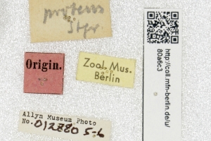 10-12: ♂, vermutlich Paralectotypus, Daten siehe Etiketten (coll. Museum fuer Naturkunde Berlin, fot.: Nick Grishin, Fotos bearbeitet: Michel Kettner)