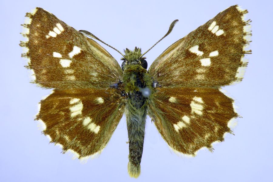 16-18: Paratypus Muschampia albata (Reverdin, 1916) ♂, Daten siehe Etiketten (fot.: Bernard Hermier, Fotos bearbeitet: Michel Kettner), coll. Muséum d'histoire naturelle de la Ville de Genève