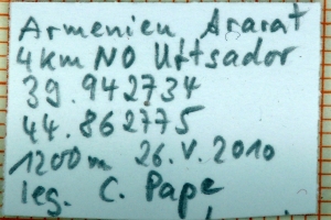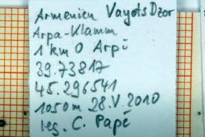 1: ♂, Armenien, Vayots Dzor, Arpa-Klamm 1 km östlich von Arpi, (39.73817, 45.296541), semiaride südexponierte Hänge, ca. 1050 m, 28. Mai 2009 (Freilandfoto: Christian Papé), conf. Ernst BrockmannForum