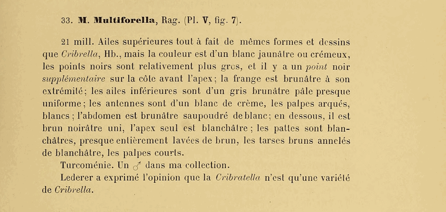 Die Angabe „1887“ in der Fauna Europaea [Version 2.4 — 27 January 2011] ist offensichtlich ebenso falsch wie die Schreibweise „multiflorella“.